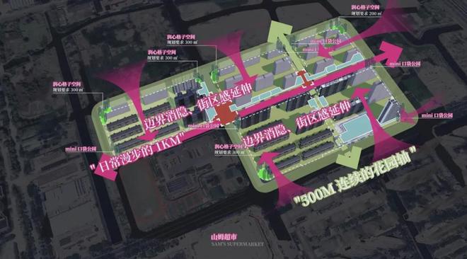 这些丰富的生活场景,则由两条景观轴线米的连续花园轴;一条是约600米的日常漫步街区。